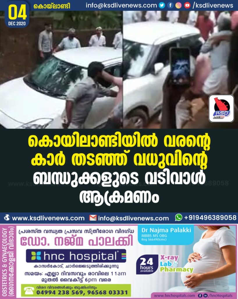 കൊയിലാണ്ടിയിൽ വരന്റെ കാർ തടഞ്ഞ് വധുവിന്റെ ബന്ധുക്കളുടെ വടിവാൾ ആക്രമണം-