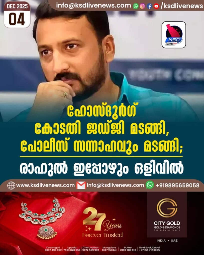 ഹോസ്ദുര്‍ഗ് കോടതി ജഡ്ജി മടങ്ങി, പോലീസ് സന്നാഹവും മടങ്ങി; രാഹുല്‍ ഇപ്പോഴും ഒളിവില്‍