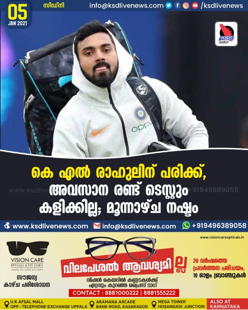 കെ എൽ രാഹുലിന് പരിക്ക് , അവസാന രണ്ട് ടെസ്റ്റും കളിക്കില്ല ; മൂന്നാഴ്ച നഷ്ടം