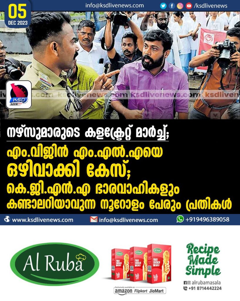 നഴ്സുമാരുടെ കളക്ട്രേറ്റ് മാർച്ച്: എം.വിജിൻ എംഎൽഎയെ ഒഴിവാക്കി കേസ്; കെജിഎൻഎ ഭാരവാഹികളും കണ്ടാലറിയാവുന്ന നൂറോളം പേരും പ്രതികൾ