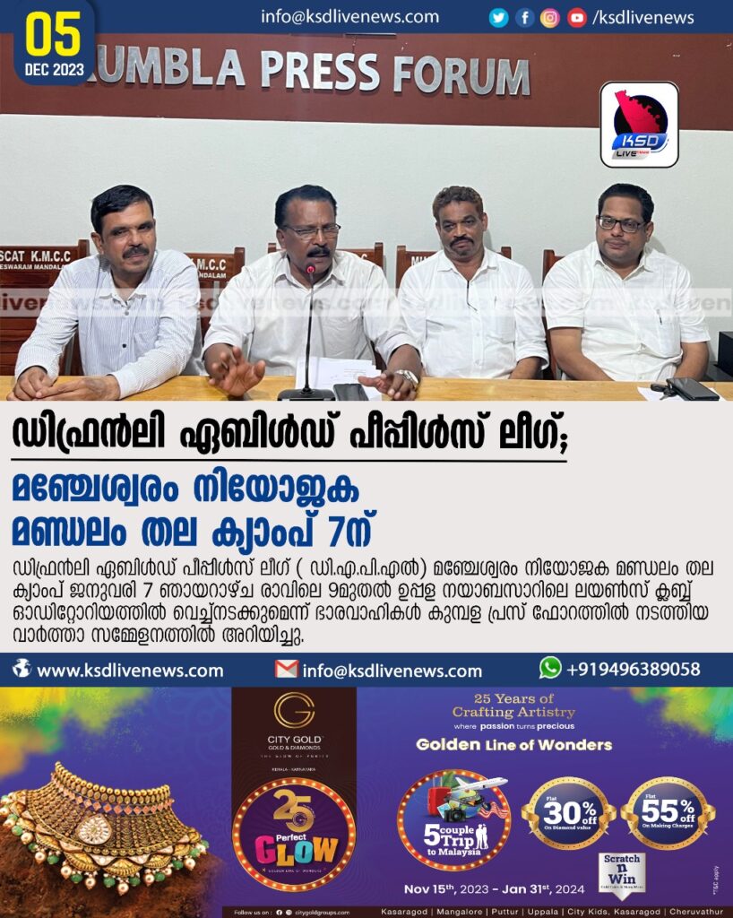 ഉപ്പള: ഡിഫ്രൻലി ഏബിൾഡ് പീപ്പിൾസ് ലീഗ് ( ഡി.എ.പി.എൽ)
