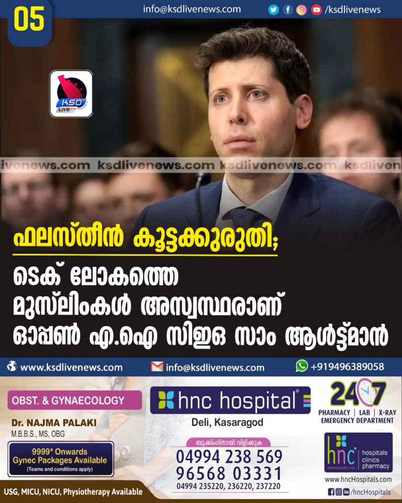 ഫലസ്തീൻ കൂട്ടക്കുരുതി: ടെക് ലോകത്തെ മുസ്ലിംകള് അസ്വസ്ഥരാണ് – ഓപ്പൺ എ.ഐ സിഇഒ സാം ആള്ട്ട്മാൻ