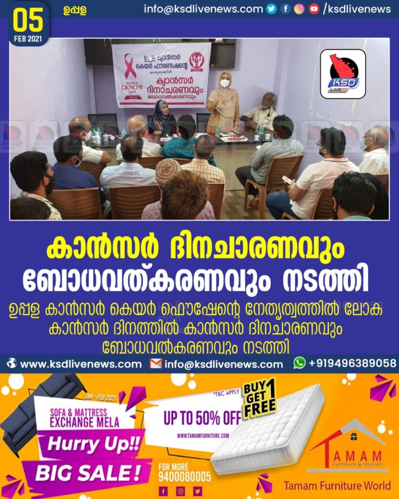 ഉപ്പള • കാൻസർ കെയർ ഫൌണ്ടേഷന്റെ നേതൃത്വത്തിൽ ലോക കാൻസർ ദിനത്തിൽ  കാൻസർ ദിനചാരണവും ബോധവൽകരണവും നടത്തി.