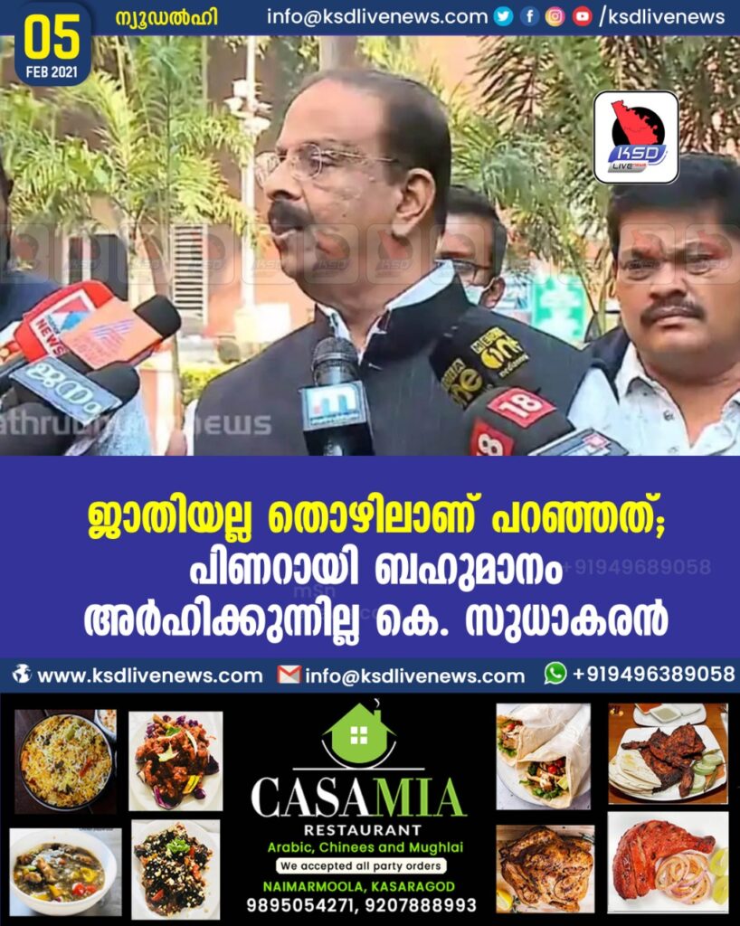 ജാതിയല്ല തൊഴിലാണ് പറഞ്ഞത്; പിണറായി ബഹുമാനം അർഹിക്കുന്നില്ല- കെ. സുധാകരന്