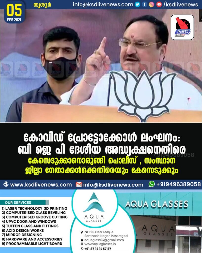 കോവിഡ് പ്രോട്ടോക്കോൾ ലംഘനം : ബി ജെ പി ദേശീയ അദ്ധ്യക്ഷനെതിരെ കേസെടുക്കാനൊരുങ്ങി പൊലീസ് , സംസ്ഥാന – ജില്ലാ നേതാക്കൾക്കെതിരെയും കേസെടുക്കും