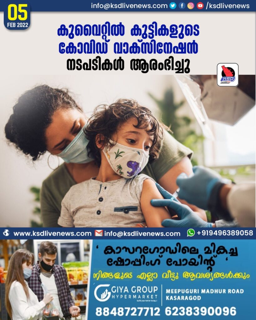 കുവൈറ്റില് കുട്ടികളുടെ കോവിഡ് വാക്സിനേഷന് നടപടികള് ആരംഭിച്ചു