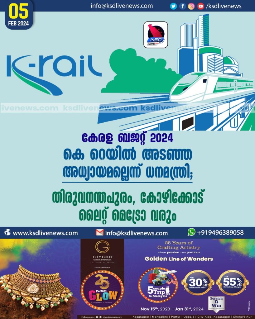 കെ റെയില്‍ അടഞ്ഞ അധ്യായമല്ലെന്ന് ധനമന്ത്രി; തിരുവനന്തപുരം, കോഴിക്കോട് ലൈറ്റ് മെട്രോ വരും