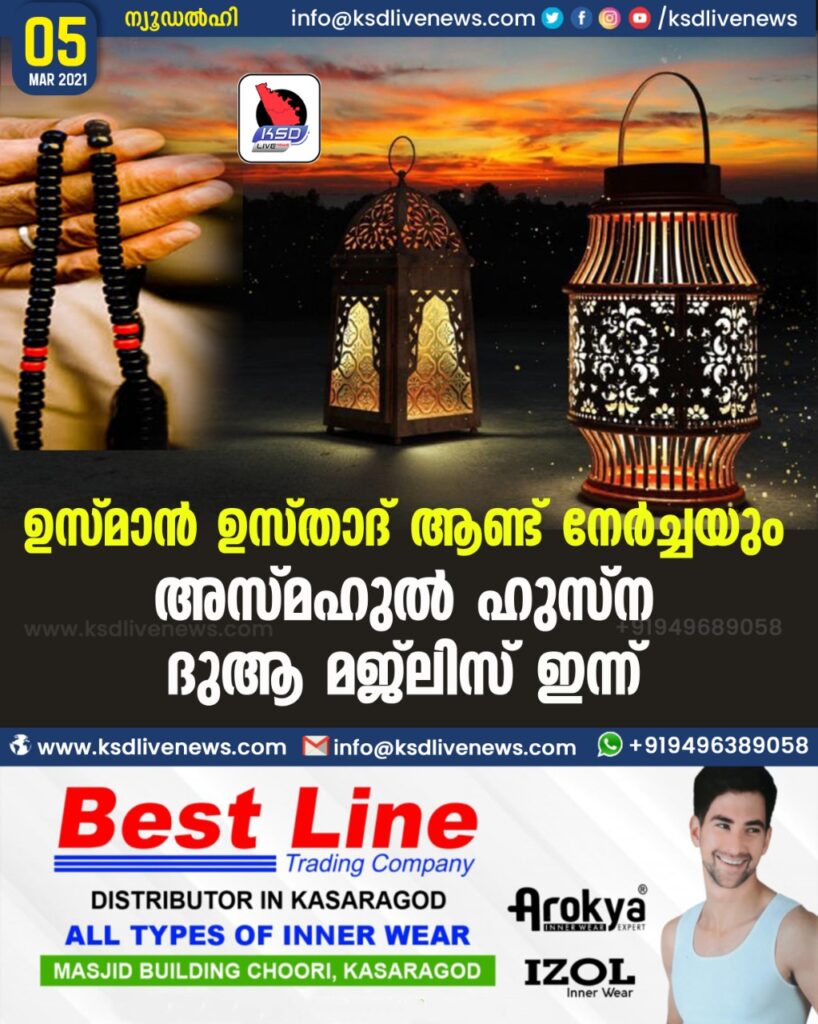 മൊഗ്രാൽ പുത്തൂർ : കോട്ടക്കുന്ന് മർക്കസുൽ മൈമനിൽ മാസാന്തോറും നടന്നു വരാറുള്ള അസ്മഹുൽ ഹുസ്ന ദുആ മജ്ലിസും മർഹൂം ഉസ്മാൻ ഉസ്താദ് ആണ്ട് നേർച്ചയും ഇന്ന് വൈകുന്നേരം 7 മണിക്ക് കോട്ടക്കുന്ന് മർകസ് മൈമൻ ക്യാമ്പസിൽ നടക്കും.അസ്മഹുൽ ഹുസ്ന മജ്ലിസിന് സുലൈമാൻ സഖാഫി ദേശാങ്കുളം നേതൃത്വം നൽകും.സഈദ് സഅദി കോട്ടക്കുന്ന് അനുസ്മരണ പ്രഭാഷണം നടത്തും.അബ്ദുൽ സലാം സഅദി ഉൽബോധനം നടത്തും.മർകസ് മൈമൻ തുടക്കത്തിന് കാരണക്കാരിയായി പ്രവർത്തിച്ച മർഹൂമ മറിയം ഹജ്ജുമ്മയുടെ അനുസ്മരണവും പ്രതേക ദുആയും നടക്കും.