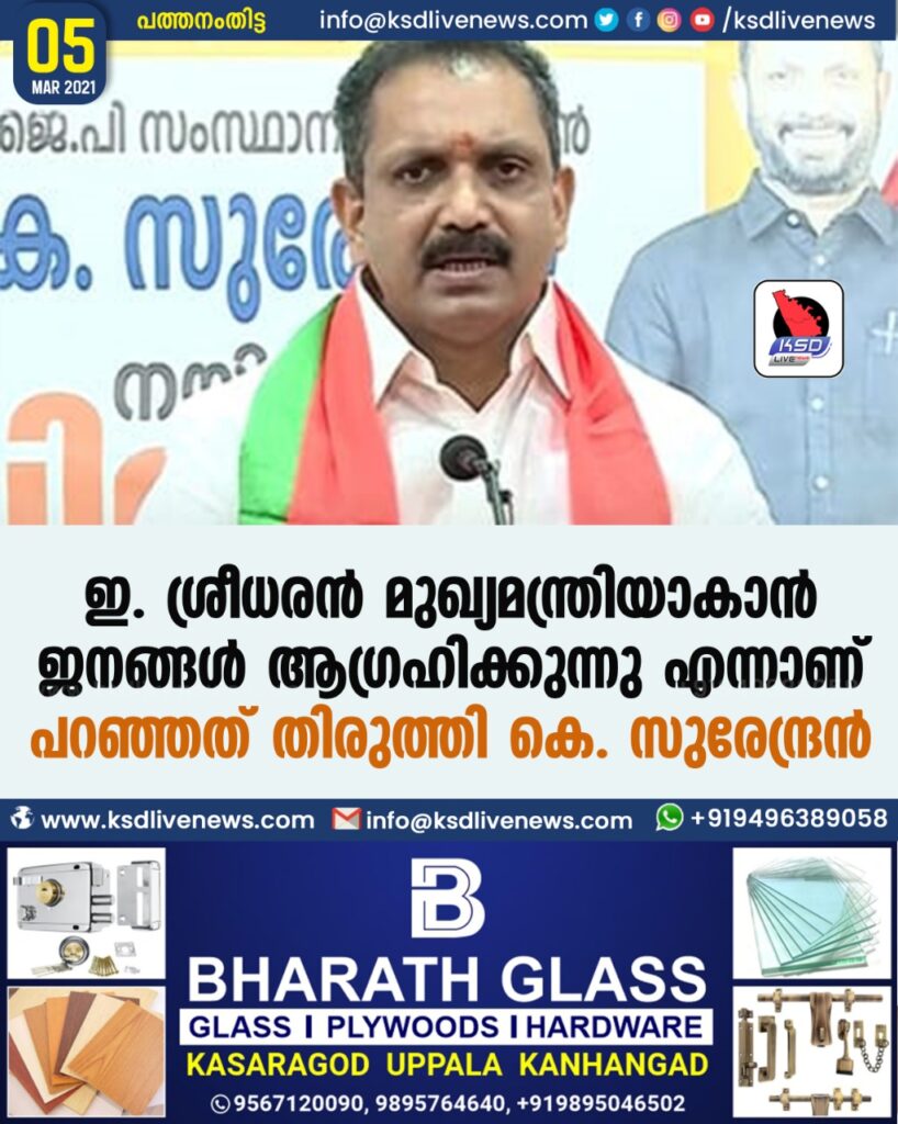 ഇ. ശ്രീധരന്‍ മുഖ്യമന്ത്രിയാകാന്‍ ജനങ്ങള്‍ ആഗ്രഹിക്കുന്നു എന്നാണ് പറഞ്ഞത്- തിരുത്തി കെ. സുരേന്ദ്രന്‍