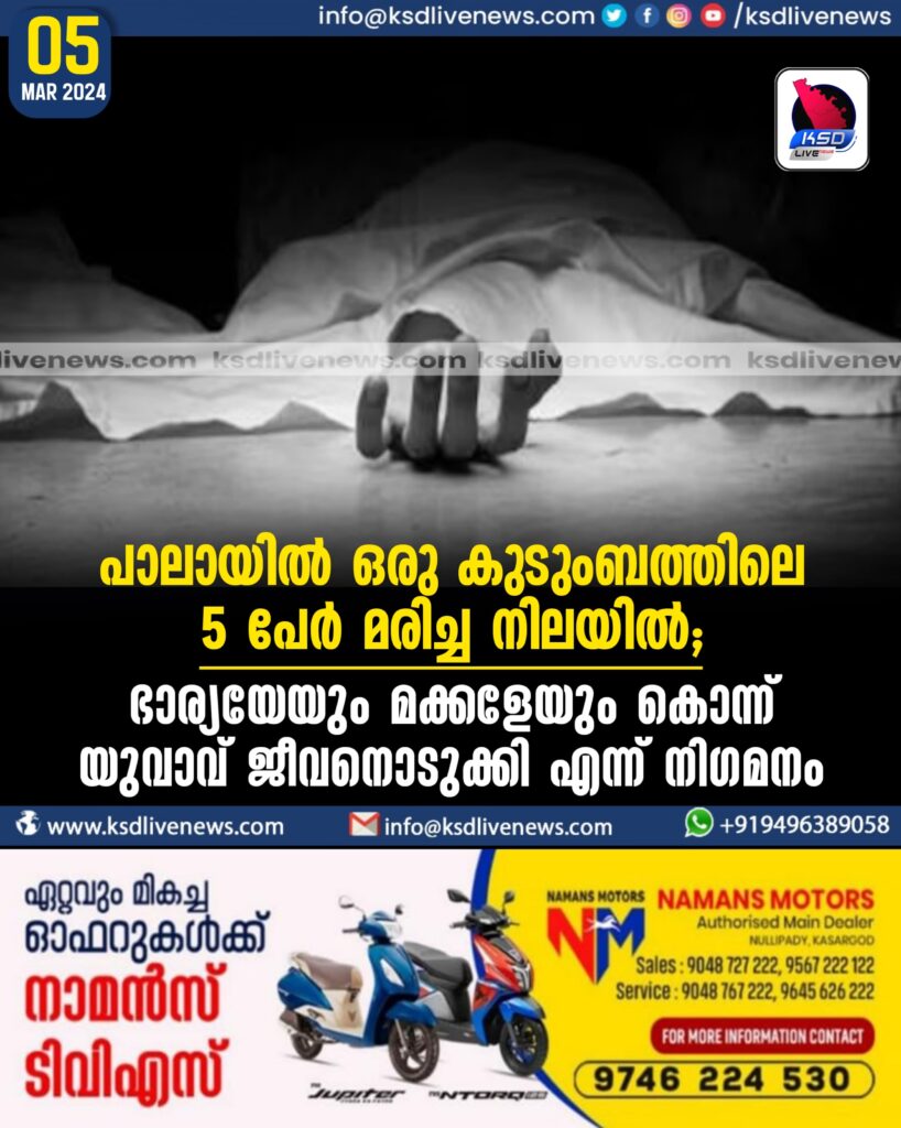 പാലായില്‍ ഒരു കുടുംബത്തിലെ 5 പേര്‍ മരിച്ച നിലയില്‍; ഭാര്യയേയും മക്കളേയും കൊന്ന് യുവാവ് ജീവനൊടുക്കി എന്ന് നിഗമനം