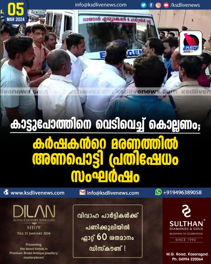 കാട്ടുപോത്തിനെ വെടിവെച്ച് കൊല്ലണം; കര്ഷകന്റെ മരണത്തില് അണപൊട്ടി പ്രതിഷേധം, സംഘര്ഷം