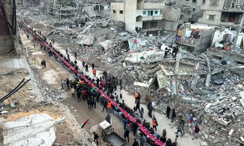 റമദാൻ മാസം മുഴുവൻ സ്ട്രിപ്പിന്റെ വടക്കും തെക്കും ഭാഗത്തുള്ള കുടിയിറക്കപ്പെട്ടവർക്കും ദുരിതബാധിതരായ കുടുംബങ്ങൾക്കും വേണ്ടിയുള്ള ക്യാമ്പുകളിൽ ഭക്ഷണം വിതരണം ചെയ്യുമെന്ന് ഗസ്സയിലെ പദ്ധതി നിർവഹണ സ്ഥാപനമായ ഫലസ്തീൻ വഫ ഫൗണ്ടേഷൻ ഫോർ ഡെവലപ്‌മെന്റ് ആൻഡ് കപ്പാസിറ്റി ബിൽഡിങ് വ്യക്തമാക്കി. പദ്ധതിയുടെ ഭാഗമായി കഴിഞ്ഞദിവസം തെക്കൻ ഗസ്സയിൽ ഇഫ്താറിനായി ഏറ്റവും ദൈർഘ്യമേറിയ റമദാൻ മേശ ഒരുക്കി. ഇവിടെ 3,000 ത്തിലധികം നോമ്പുകാർ ഇഫ്താർ മേശയിൽ ഒത്തുകൂടി. വടക്കൻ ഗസ്സയിൽ ആയിരത്തിലധികം നോമ്പുകാർ ഉൾപ്പെട്ട സമൂഹ ഇഫ്താറും ഒരുക്കി.