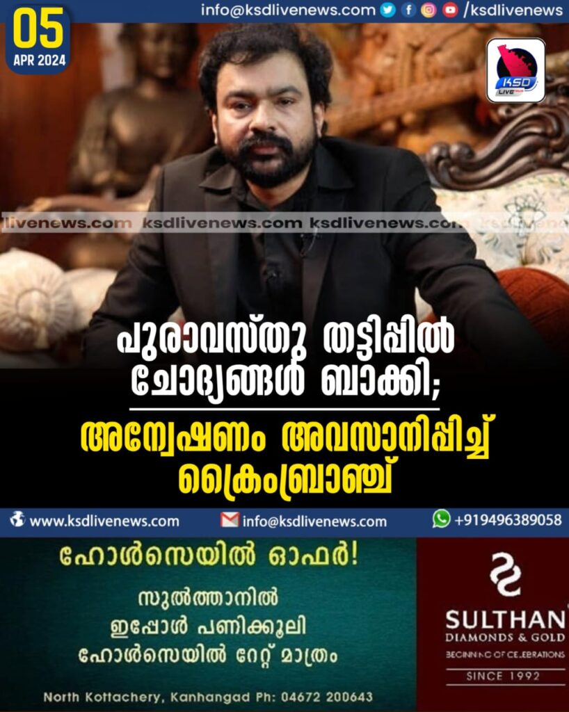 പുരാവസ്തു തട്ടിപ്പിൽ ചോദ്യങ്ങൾ ബാക്കി; അന്വേഷണം അവസാനിപ്പിച്ച് ക്രൈംബ്രാഞ്ച്