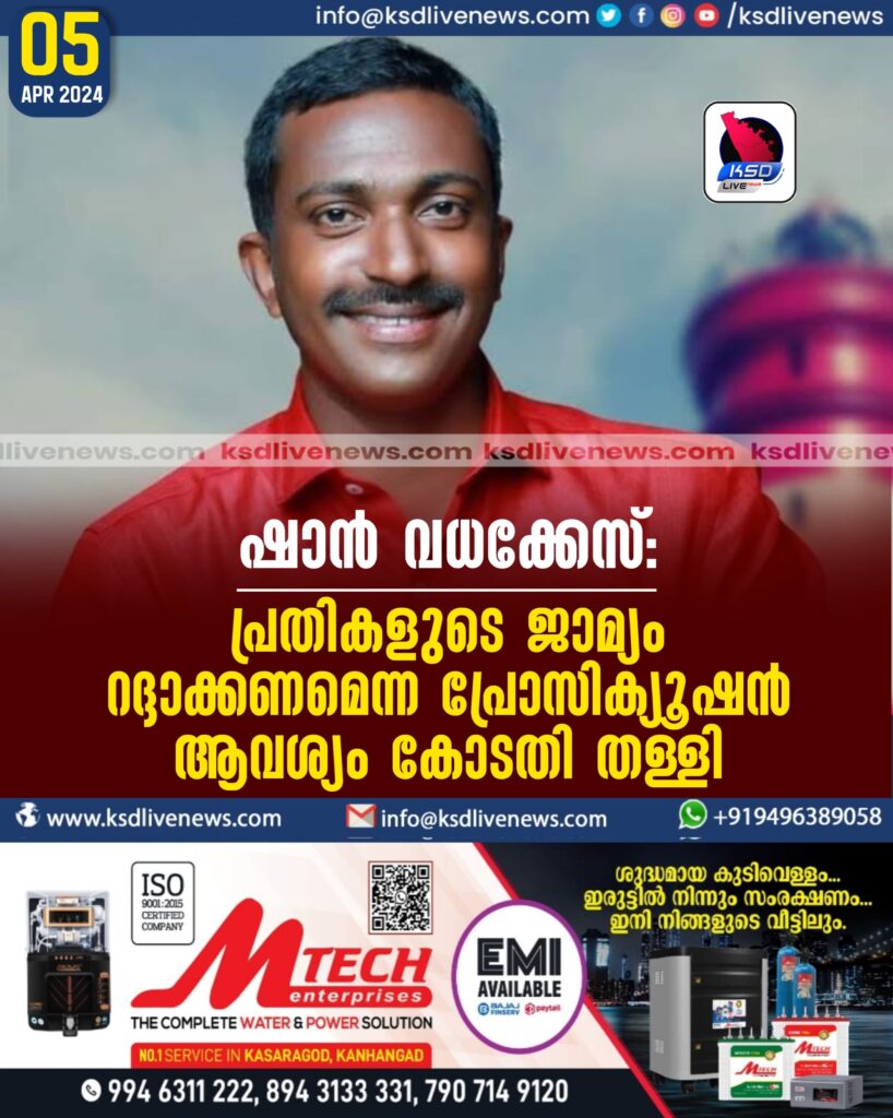 ഷാന് വധക്കേസ്: പ്രതികളുടെ ജാമ്യം റദ്ദാക്കണമെന്ന പ്രോസിക്യൂഷന് ആവശ്യം കോടതി തള്ളി