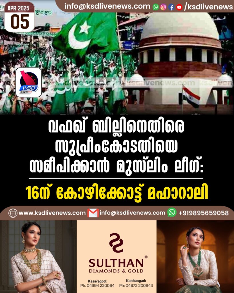 വഫഖ് ബില്ലിനെതിരെ സുപ്രീംകോടതിയെ സമീപിക്കാൻ മുസ്ലിം ലീഗ്; 16ന് കോഴിക്കോട്ട് മഹാറാലി