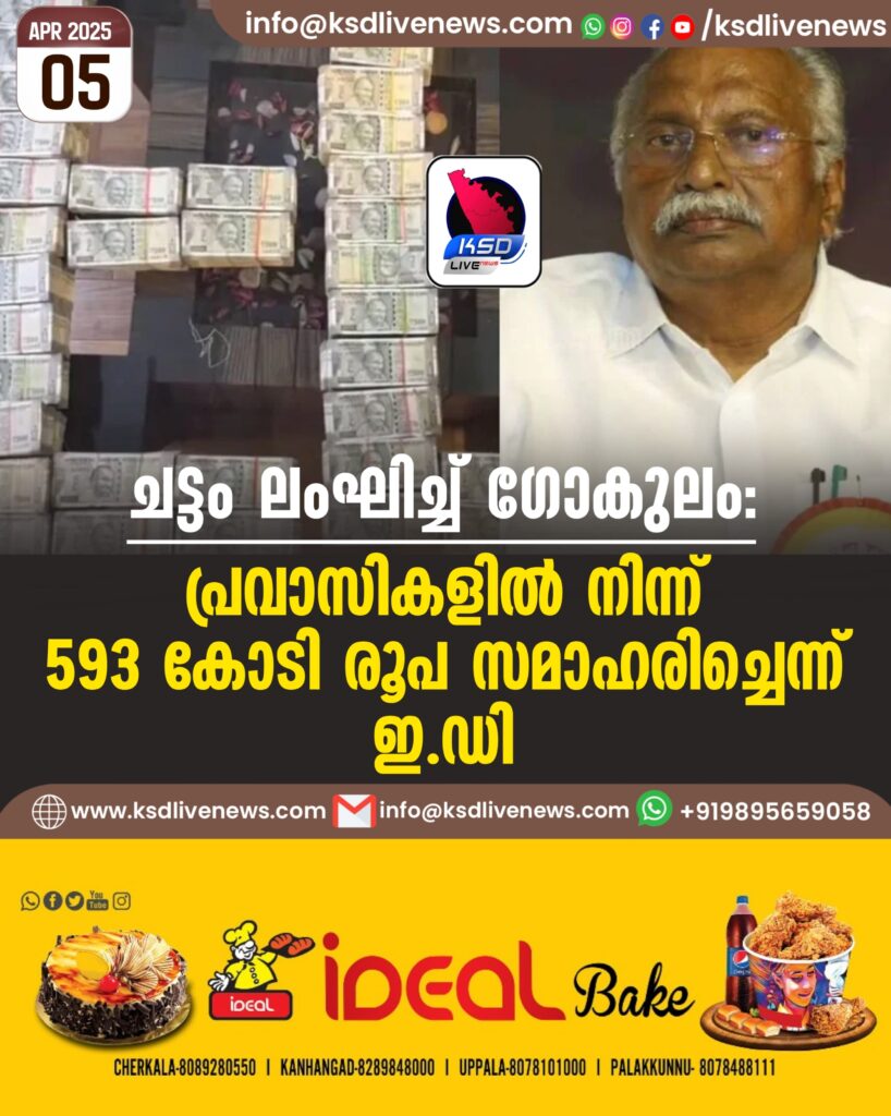 ചട്ടം ലംഘിച്ച് ഗോകുലം; പ്രവാസികളില് നിന്ന് 593 കോടി രൂപ സമാഹരിച്ചെന്ന് ഇ.ഡി