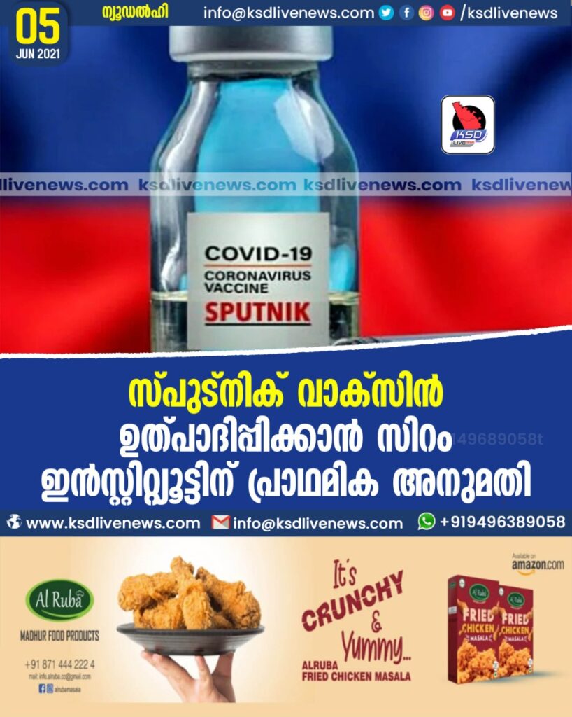 സ്പുട്നിക് വാക്സിന് ഉത്പാദിപ്പിക്കാന് സിറം ഇന്സ്റ്റിറ്റ്യൂട്ടിന് പ്രാഥമിക അനുമതി