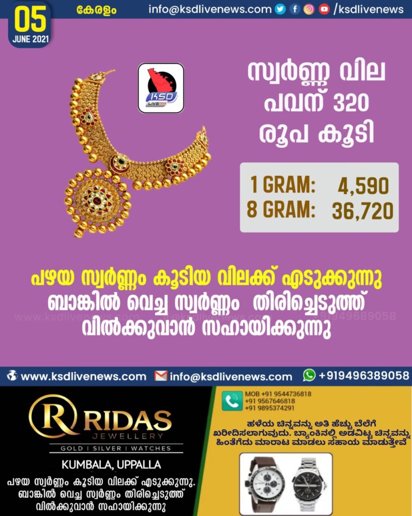 സ്വർണവില പവന് 320 രൂപ കൂടി 36,720 രൂപയായി