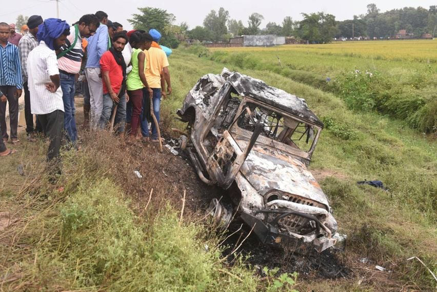 ലഖിംപൂര് ഖേരിയില് അപകടത്തിനിടയാക്കിയ കാര് | ഫോട്ടോ: എ.പി