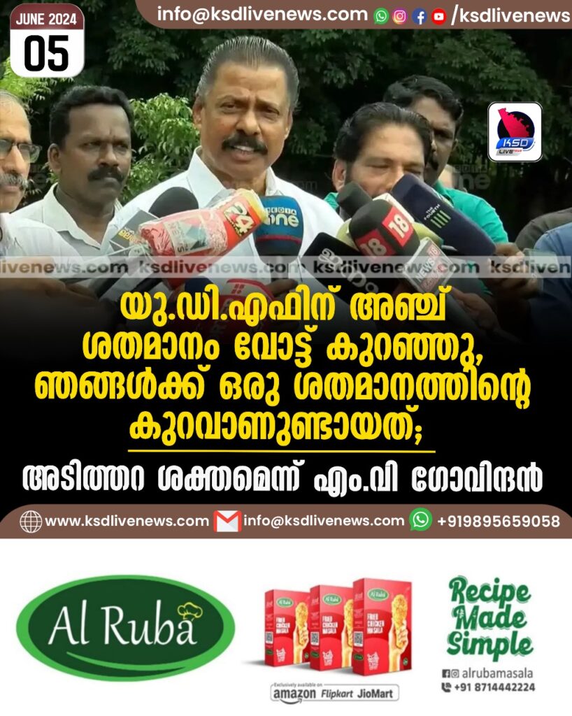യു.ഡി.എഫിന് അഞ്ച് ശതമാനം വോട്ട് കുറഞ്ഞു, ഞങ്ങള്ക്ക് ഒരു ശതമാനത്തിന്റെ കുറവാണുണ്ടായത്’; അടിത്തറ ശക്തമെന്ന് എം.വി ഗോവിന്ദൻ