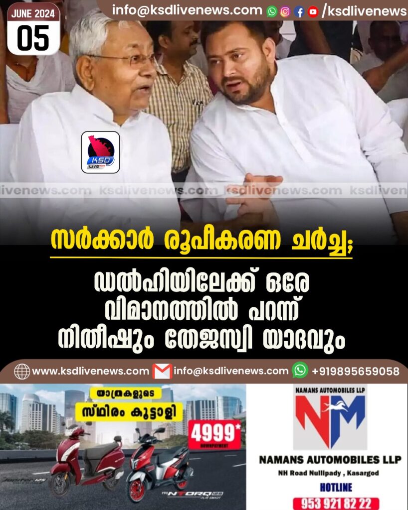 ഇരുവരും ബിഹാറില്‍നിന്ന് ഒരേ വിമാനത്തിലാണ് പോകുന്നത്. നിതീഷ് ബുധനാഴ്ച വൈകീട്ട് നാലിന് നടക്കുന്ന എൻ.ഡി.എ യോഗത്തിലും തേജസ്വി യാദവ് വൈകീട്ട് ആറിന് നടക്കുന്ന ഇൻഡ്യാ സഖ്യത്തിന്റെ യോഗത്തിലും പങ്കെടുക്കും. ലോക് ജനശക്തി പാർട്ടി പ്രസിഡന്റ്‌ ചിരാഗ് പാസ്വാനുമായി കൂടിക്കാഴ്ച നടത്തിയ ശേഷമാണു നിതീഷ് ഡല്‍ഹിക്ക് പുറപ്പെട്ടത്