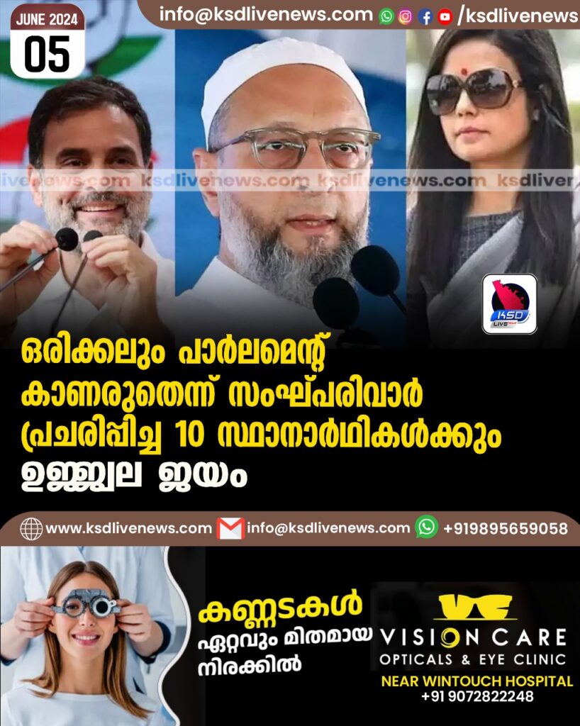ന്യൂഡല്‍ഹി: ഒരിക്കലും പാർലമെന്റ് കാണരുതെന്ന് സംഘ്പരിവാർ പ്രചരിപ്പിച്ച 10 സ്ഥാനാർഥികള്‍ക്കും ലോക്‌സഭാ തെരഞ്ഞെടുപ്പില്‍ ഉജ്ജ്വല വിജയം.