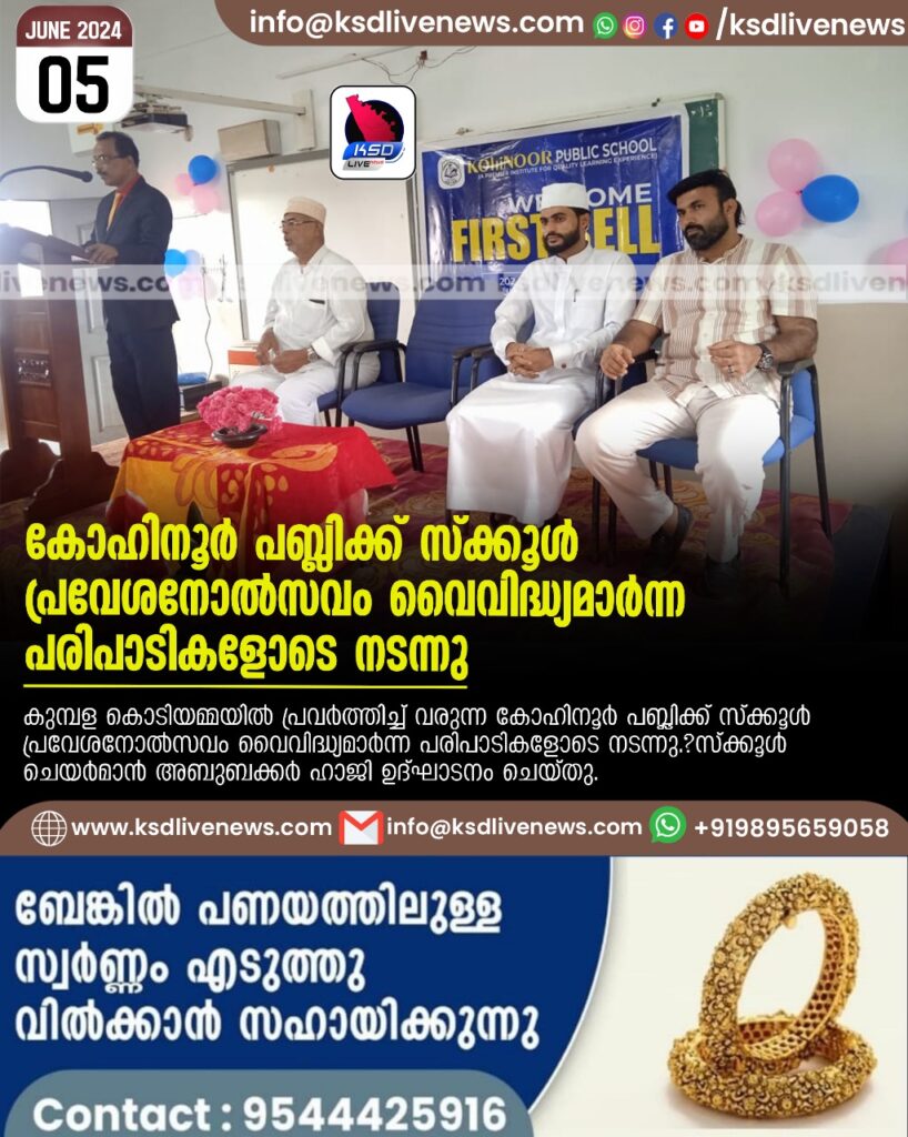 കുമ്പള: കുമ്പള, കൊടിയമ്മയിൽ പ്രവർത്തിച്ച് വരുന്ന കോഹിനൂർ പബ്ലിക്ക് സ്ക്കൂൾ പ്രവേശനോൽസവം വൈവിദ്ധ്യമാർന്ന പരിപാടികളോടെ നടന്നു.