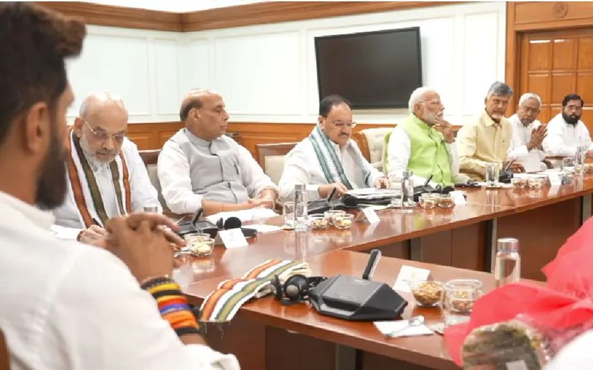 ലോക്സഭാ തിരഞ്ഞെടുപ്പിൽ 292 സീറ്റുകൾ നേടിയതിനു പിന്നാലെ ബുധനാഴ്ച വൈകീട്ടോടെയാണ് യോഗം ചേർന്നത്. പ്രധാനമന്ത്രി നരേന്ദ്ര മോദി, ബിജെപി ദേശീയ അധ്യക്ഷൻ ജെപി നഡ്ഡ, കേന്ദ്ര ആഭ്യന്തര മന്ത്രി അമിത് ഷാ, ടിഡിപി നേതാവ് ചന്ദ്രബാബു നായിഡു, ബിഹാർ മുഖ്യമന്ത്രി നിതീഷ് കുമാർ, മഹാരാഷ്ട്ര മുഖ്യമന്ത്രി ഏക്നാഥ് ഷിൻഡെ, ജെഡിയു നേതാക്കളായ ലല്ലൻ സിങ്, സഞ്ജയ് ഝാ തുടങ്ങിയവർ പങ്കെടുത്തു.