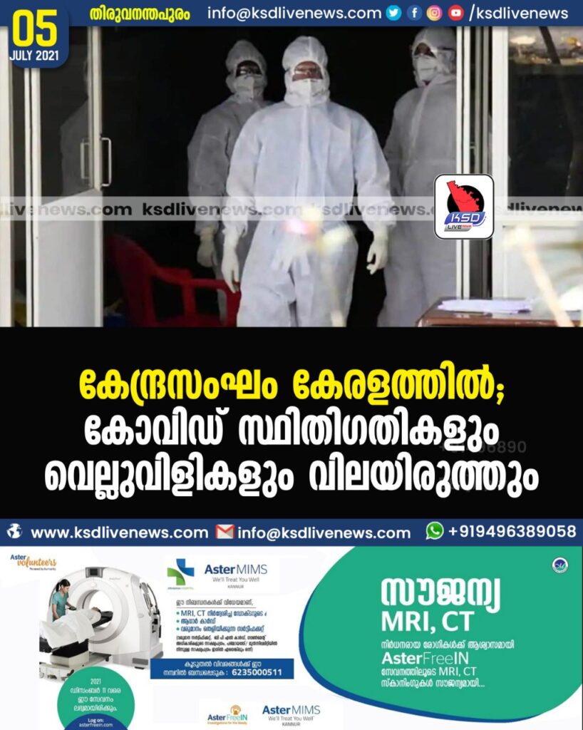 കേന്ദ്രസംഘം കേരളത്തില്; കൊവിഡ് സ്ഥിതിഗതികളും വെല്ലുവിളികളും വിലയിരുത്തും