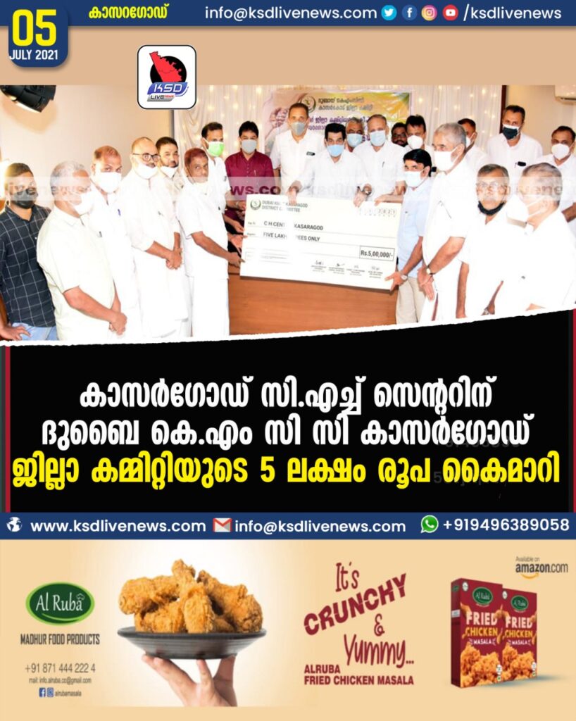 കാസർഗോഡ് സി.എച്ച് സെൻ്ററിന് ദുബൈ കെ.എം സി സി കാസർഗോഡ് ജില്ലാ കമ്മിറ്റിയുടെ 5 ലക്ഷം രൂപ കൈമാറി