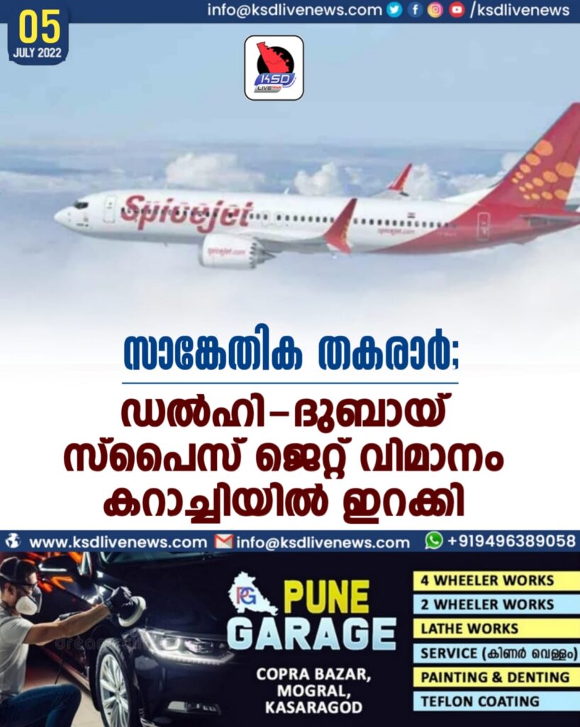 സാങ്കേതിക തകരാർ; ഡൽഹി–ദുബായ് സ്പൈസ് ജെറ്റ് വിമാനം കറാച്ചിയിൽ ഇറക്കി