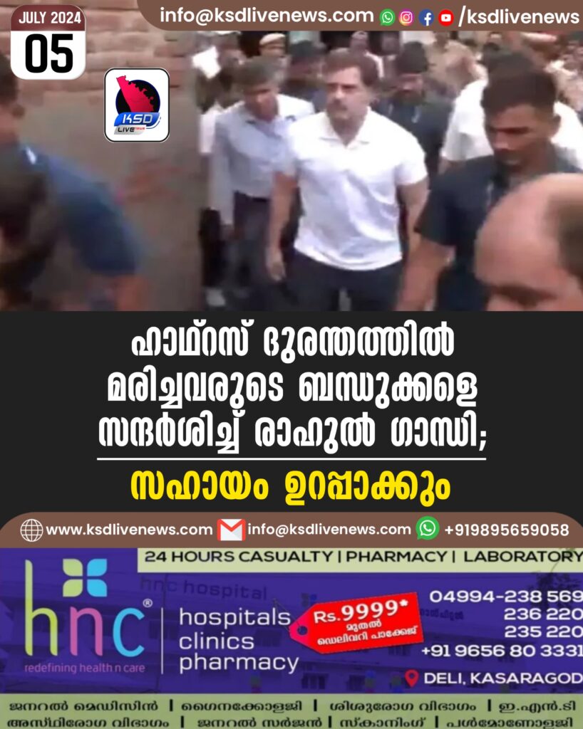 ഹാഥ്റസ് ദുരന്തത്തില് മരിച്ചവരുടെ ബന്ധുക്കളെ സന്ദര്ശിച്ച് രാഹുല്ഗാന്ധി; സഹായം ഉറപ്പാക്കും