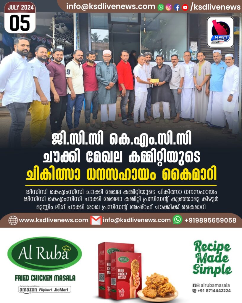 ജിസിസി കെഎംസിസി ചൗക്കി മേഖല കമ്മിറ്റിയുടെ ചികിത്സാ ധനസഹായം ജിസിസി കെഎംസിസി ചൗക്കി മേഖലാ കമ്മിറ്റി പ്രസിഡന്റ് കുഞ്ഞാമു കീഴുർ മുസ്ലിം ലീഗ് ചൗക്കി ശാഖ പ്രസിഡന്റ്അഷ്റഫ്