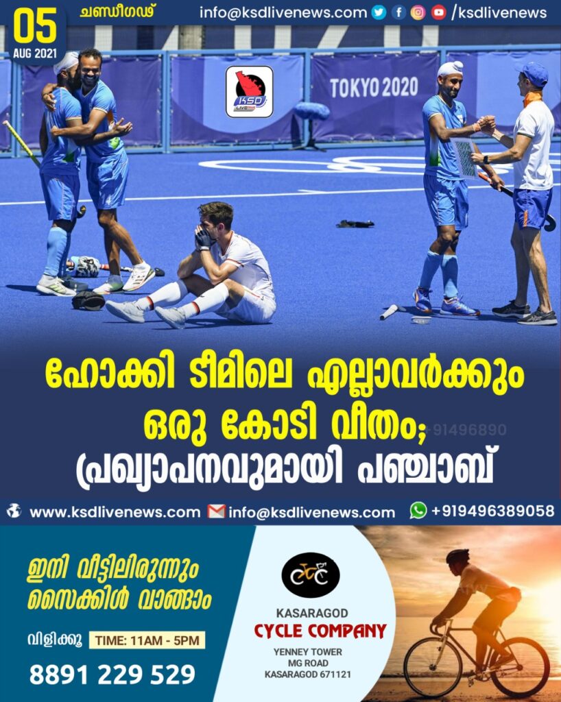 ഹോക്കി ടീമിലെ എല്ലാവര്ക്കും ഒരു കോടി വീതം; പ്രഖ്യാപനവുമായി പഞ്ചാബ്