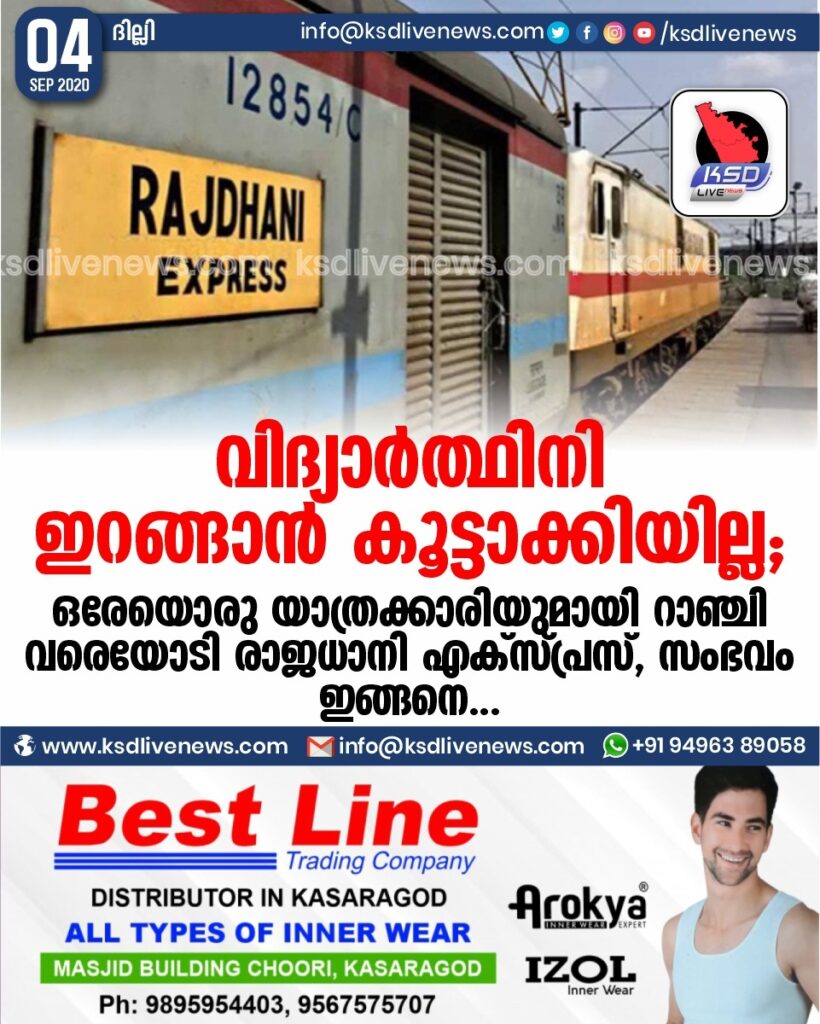 വിദ്യാർത്ഥിനി ഇറങ്ങാൻ കൂട്ടാക്കിയില്ല ; ഒരേയൊരു യാത്രക്കാരിയുമായി റാഞ്ചി വരെയോടി രാജധാനി എക്സ്പ്രസ്, സംഭവം ഇങ്ങനെ…