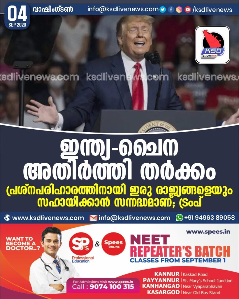 ഇന്ത്യ-ചൈന അതിർത്തി തർക്കം ; പ്രശ്നപരിഹാരത്തിനായി ഇരു രാജ്യങ്ങളെയും സഹായിക്കാൻ സന്നദ്ധമാണ് ; ട്രംപ്
