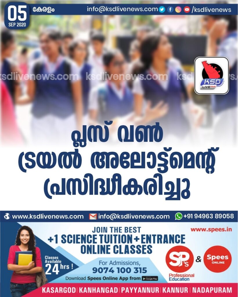 പ്ലസ് വൺ: ട്രയൽ അലോട്ട്മെന്റ് പ്രസിദ്ധീകരിച്ചു