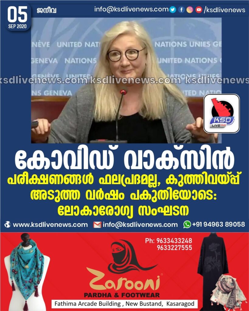 കോവിഡ് വാക്സിൻ ; പരീക്ഷണങ്ങൾ ഫലപ്രദമല്ല , കുത്തിവയ്പ്പ് അടുത്ത വർഷം പകുതിയോടെ : ലോകാരോഗ്യ സംഘടന (WHO)