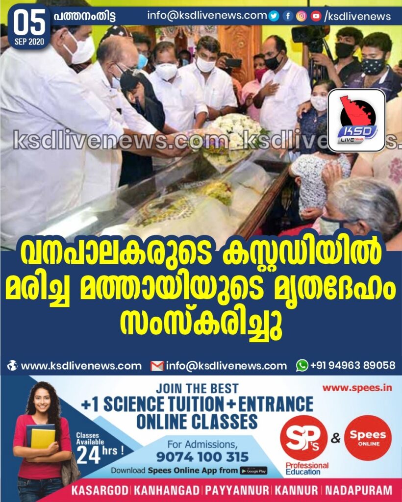 വനപാലകരുടെ കസ്റ്റഡിയില്‍ മരിച്ച മത്തായിയുടെ മൃതദേഹം സംസ്‌കരിച്ചു