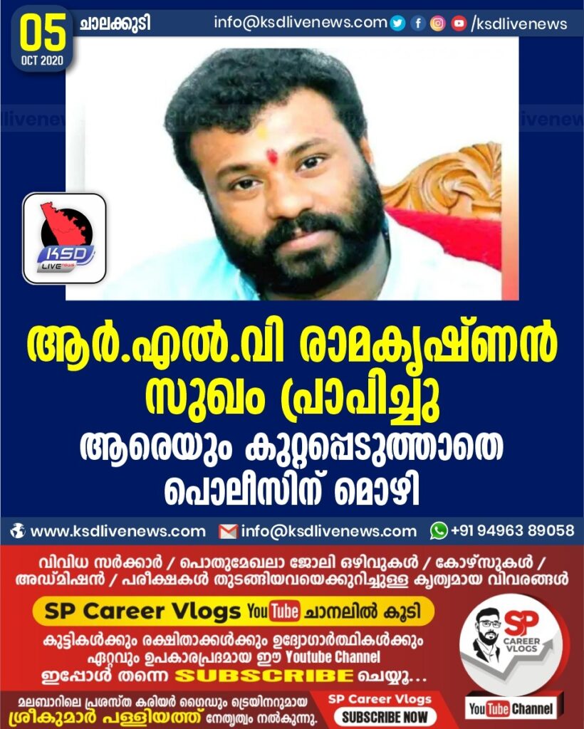 ആർ.എൽ.വി രാമകൃഷ്ണൻ സുഖം പ്രാപിച്ചു : ആരെയും കുറ്റപ്പെടുത്താതെ പൊലീസിന് മൊഴി