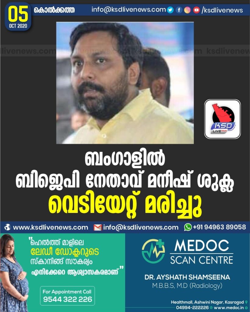 ബംഗാളില് ബിജെപി നേതാവ് മനീഷ് ശുക്ല വെടിയേറ്റ് മരിച്ചു;
