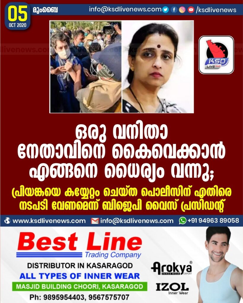 ഒരു വനിതാ നേതാവിനെ കൈവെക്കാൻ എങ്ങനെ ധൈര്യം വന്നു ?; പ്രിയങ്കയെ കയ്യേറ്റം ചെയ്ത പൊലീസിന് എതിരെ നടപടി വേണമെന്ന് ബിജെപി വൈസ് പ്രസിഡന്റ്