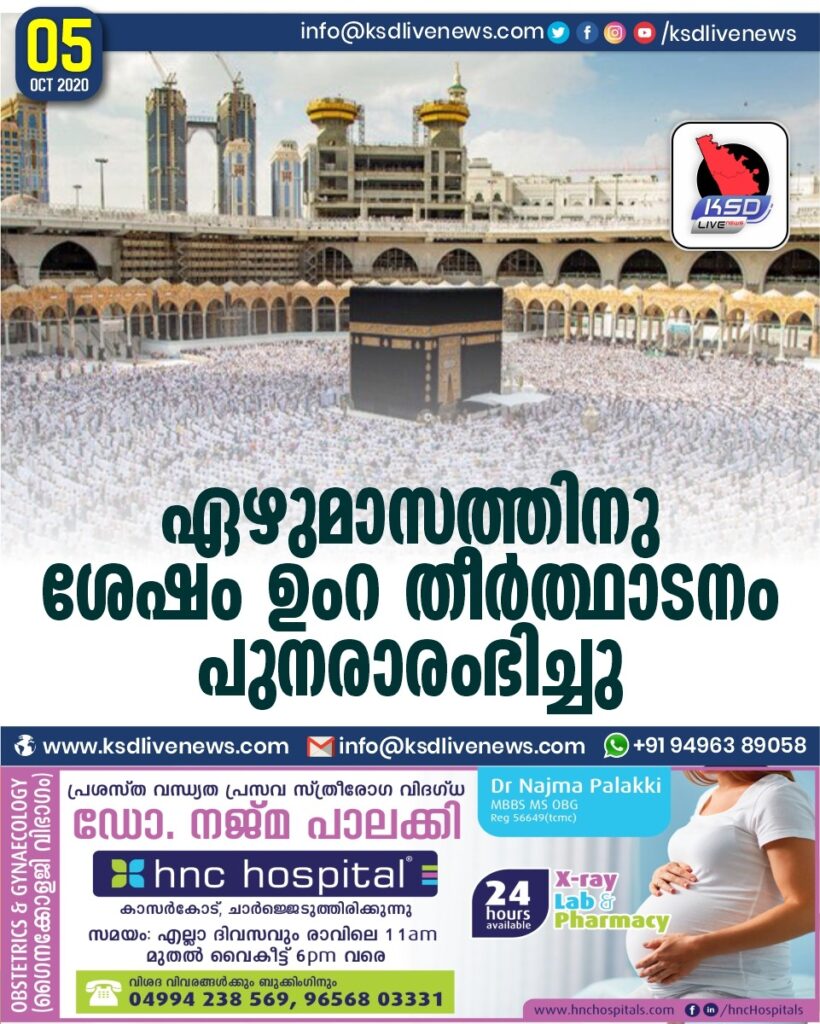ഏഴുമാസത്തിനുശേഷം ഉംറ തീർത്ഥാടനം പുനരാരംഭിച്ചു