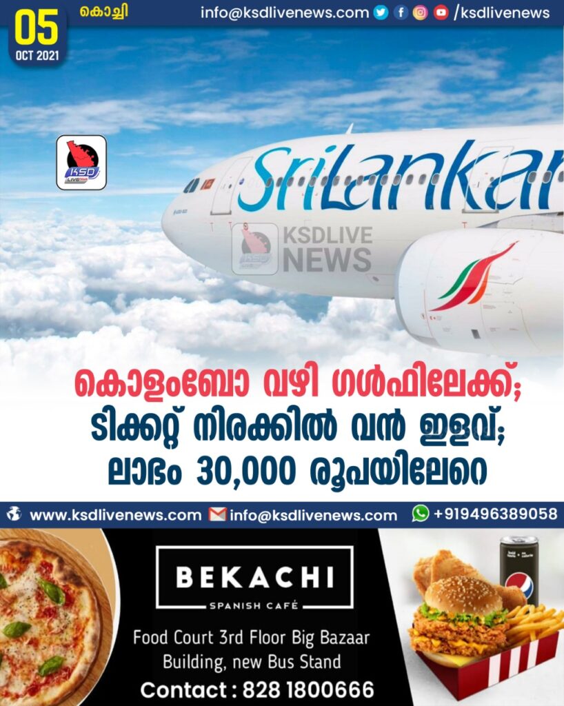 കൊളംബോ വഴി ഗള്‍ഫിലേക്ക്; ടിക്കറ്റ് നിരക്കില്‍ വന്‍ ഇളവ്,ലാഭം 30,000 രൂപയിലേറെ