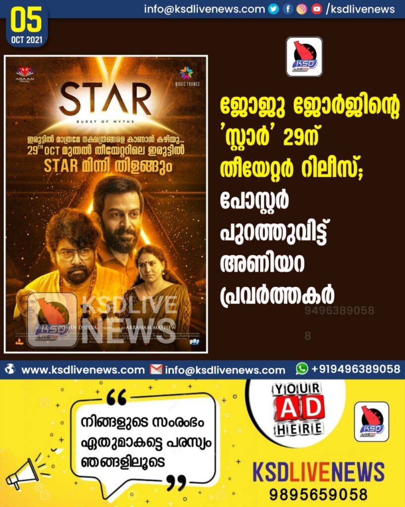ജോജു ജോര്ജിന്റെ ‘സ്റ്റാര്’ 29ന് തീയേറ്റർ റിലീസ്; പോസ്റ്റർ പുറത്തുവിട്ട് അണിയറ പ്രവർത്തകർ