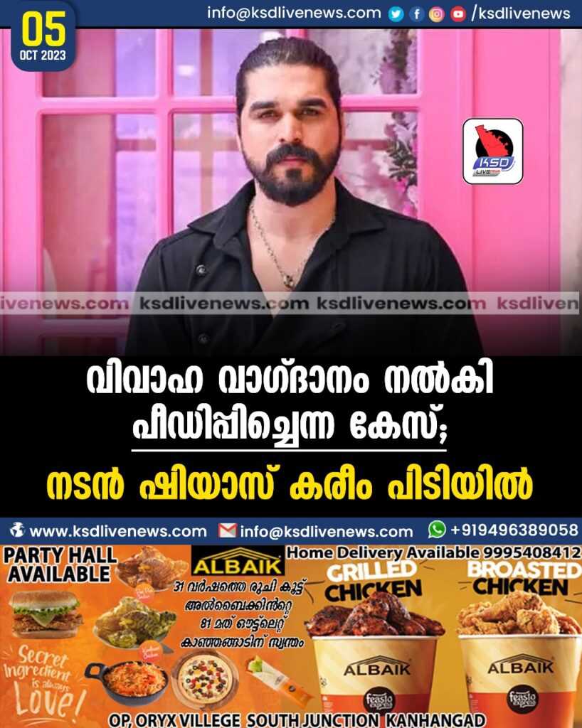 വിവാഹ വാഗ്ദാനം നല്‍കി പീഡിപ്പിച്ചെന്ന കേസ്; നടൻ ഷിയാസ് കരീം പിടിയില്‍, ഉടൻ അറസ്റ്റുണ്ടാകുമെന്ന് വിവരം
