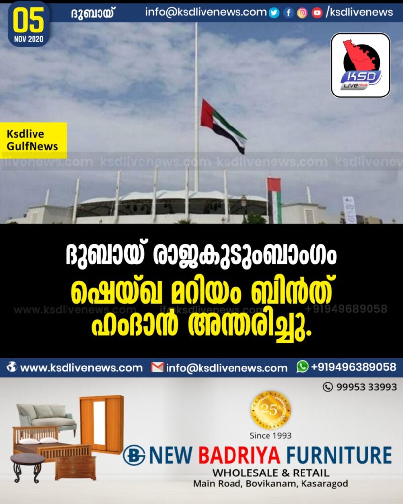 ദുബായ് രാജകുടുംബാംഗം ഷെയ്ഖ മറിയം ബിൻത് ഹംദാൻ അന്തരിച്ചു.
