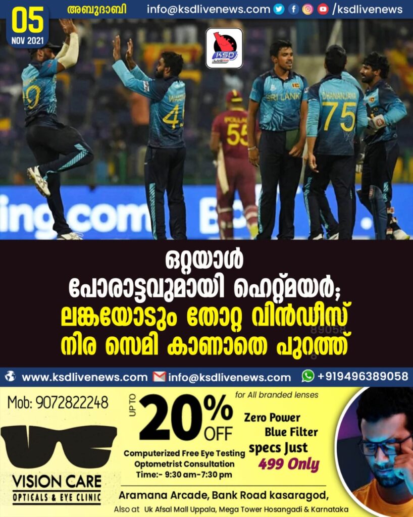ഒറ്റയാള്‍ പോരാട്ടവുമായി ഹെറ്റ്മയര്‍; ലങ്കയോടും തോറ്റ വിന്‍ഡീസ് നിര സെമി കാണാതെ പുറത്ത്