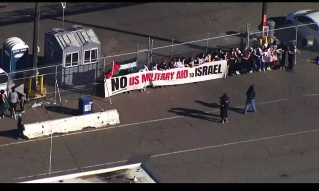 ഇസ്രായേലിലേക്ക് ആയുധങ്ങളുമായി പോകുന്ന യു.എസ് കപ്പല് തടഞ്ഞ് പ്രതിഷേധം / video