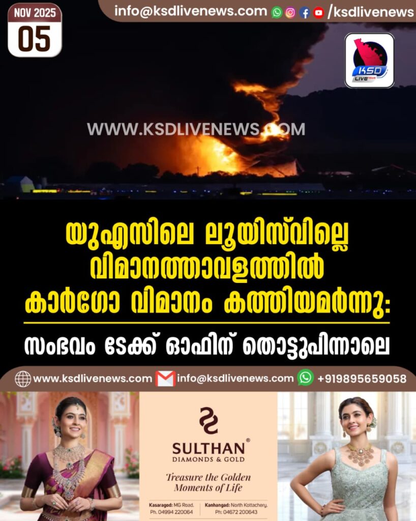 വിമാനത്താവളത്തിന് വടക്കുള്ള ഒഹായോ നദി വരെയുള്ള എല്ലാ പ്രദേശങ്ങളിലേക്കും ഷെല്ട്ടര്-ഇന്-പ്ലേസ് ഓര്ഡര് നല്കിയിട്ടുണ്ടെന്ന് ലൂയിസ്വില്ലെ മെട്രോ എമര്ജന്സി സര്വീസസ് പറഞ്ഞു. യുപിഎസ് കമ്പനിയുടെ ഉടമസ്ഥതയിലുള്ള മക്ഡൊണല് ഡഗ്ലസ് എംഡി-11 വിമാനമാണ് കത്തിയതെന്നാണ് റിപ്പോര്ട്ട്.